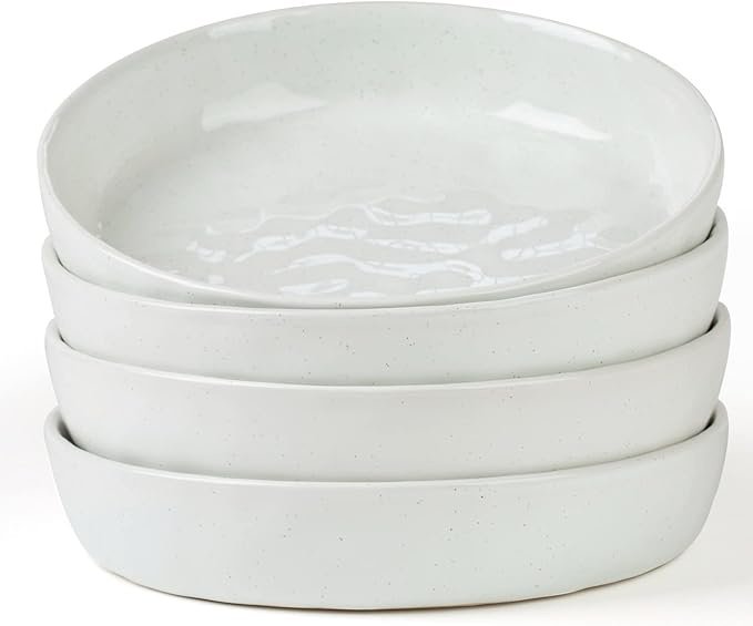 famiware Mars 4 Pieces Pasta Bowls Set, 8.5 inch Salad Bowls, Large Capacity, Bowl Sets with Brown Speckled, Microwave & Dishwasher Safe, White