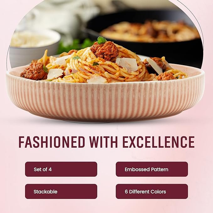 American Atelier 9-Inch Pasta Bowl (Set of 4) - 42 oz Wide Shallow Porcelain Low Dinner Bowls, Stylish & Modern Dinnerware for Serving at Home American Atelier 9-Inch Pasta Bowl (Set of 4) - 42 oz Wide Shallow Porcelain Low Dinner Bowls, Stylish & Modern Dinnerware for Serving at Home