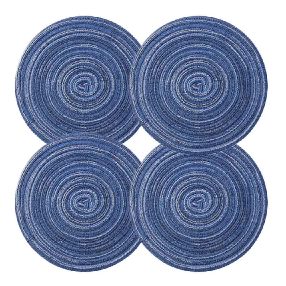 Home > 4 Pcs Woven Ramie Placemats Round Placemat Kitchen Accessories Home Decoration Table Mats Teapot Mats 7 inch, Blue