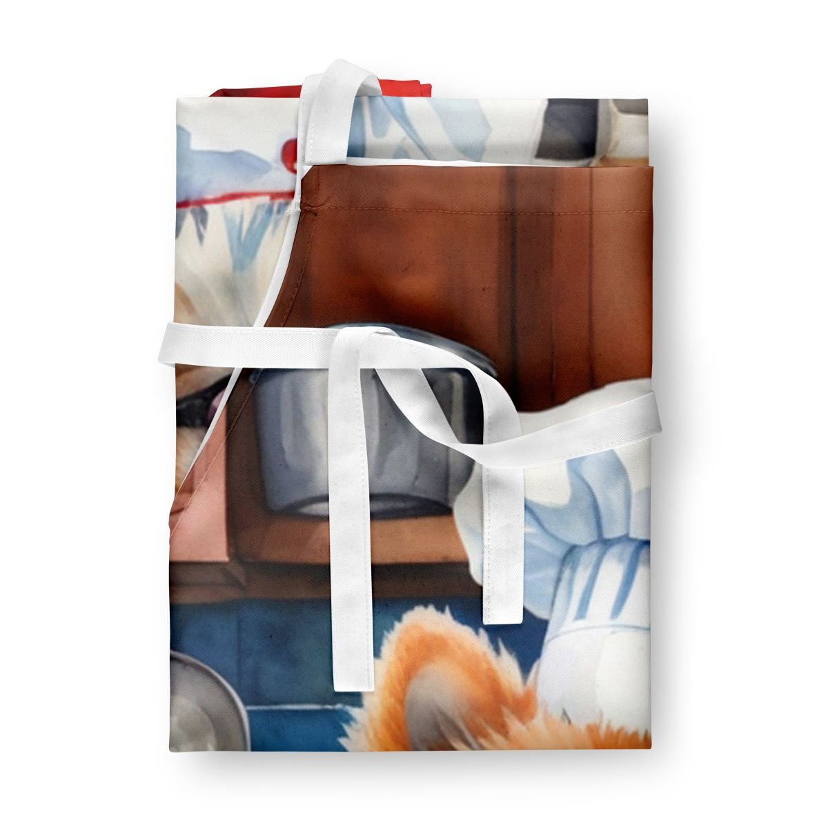 Apron featuring breed specific Pomeranian artwork. Elevate your cooking, baking, and grilling experiences with our versatile Kitchen or BBQ Apron. This Bib Style apron isn't just limited to culinary activities - it also serves as an excellent baking apron, artist apron, server apron, gardening apron, or even a dog grooming apron. The apron showcases vibrant full-color artwork contributed by one of our talented artists, bringing a dash of style to your daily tasks. With dimensions of approximately 27"W x 30"H, it provides ample coverage to protect your clothing from spills and splashes. Our apron is meticulously crafted from 100% Ultra Spun Polyester, known for its durability and lightweight nature. The apron comes with white tie straps, ensuring a comfortable and adjustable fit for all. It's a perfect choice for kitchen apron enthusiasts, whether you are a woman or a man. Designed for easy maintenance, this apron is fully machine washable. The quick-drying polyester material actively reduces staining, keeping your apron looking fresh and new for longer. Our beautifully designed apron isn't just a functional kitchen accessory - it's a fashion statement in the culinary world!