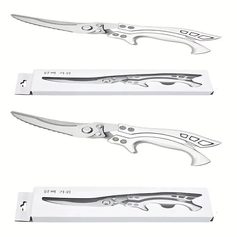 German industrial grade heavy-duty stainless steel kitchen automatic rebound scissors - professional multifunctional poultry scissors (1/2 piece set)